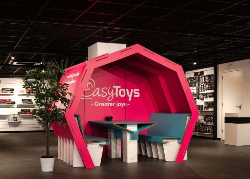 De Bee Connect P4/P2 is een modulaire pop-up vergaderruimte van 100% recyclebaar karton. Lichtgewicht, snel op te zetten en volledig te bedrukken voor maximale merkimpact. Ideaal voor kantoor, beurs of event – duurzaam, opvallend en flexibel.