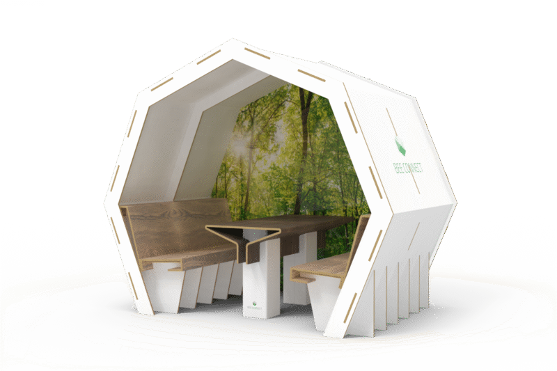 Kortom een duurzame vergader, werk of ontmoetingsplek! Geschikt voor beurzen, evenementen of op het kantoor. Bee Creative!